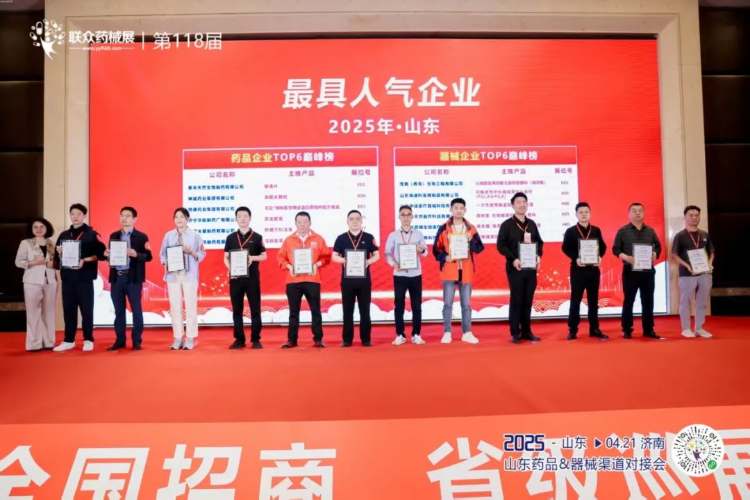 在刚刚落幕的第 118 届联众药械展山东站活动中,宁夏洲洋制药有限公司凭借卓越的产品品质与企业魅力,成功斩获 “山东最具人气企业” 奖项,载誉而归。这也是继上次安徽站获奖后,洲洋制药再次获得这一殊荣。往期回顾:荣耀时刻!洲洋制药荣获“安徽最具人气企业”